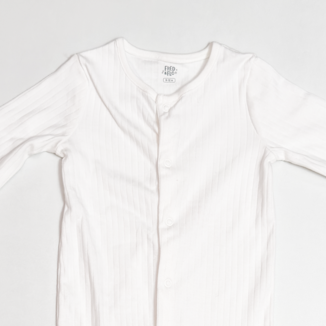 WHITE RIBBED BUTTON SLEEPSUIT