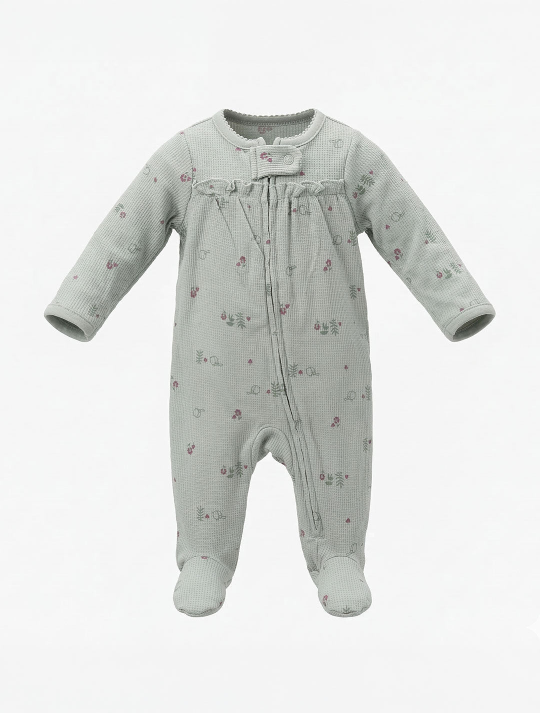SAGE GREEN KNITTED FLORAL ZIPPER SLEEPSUIT