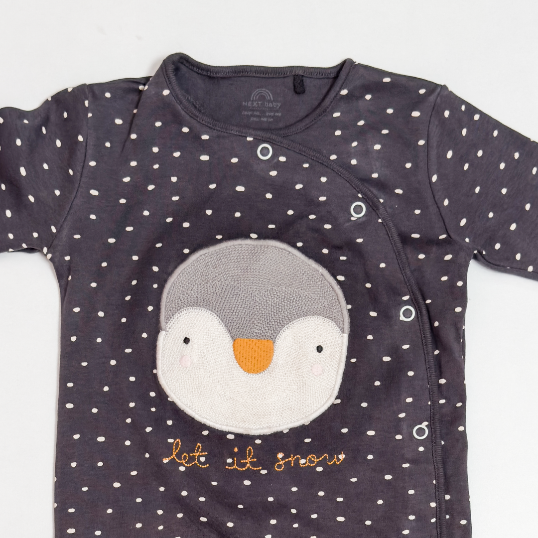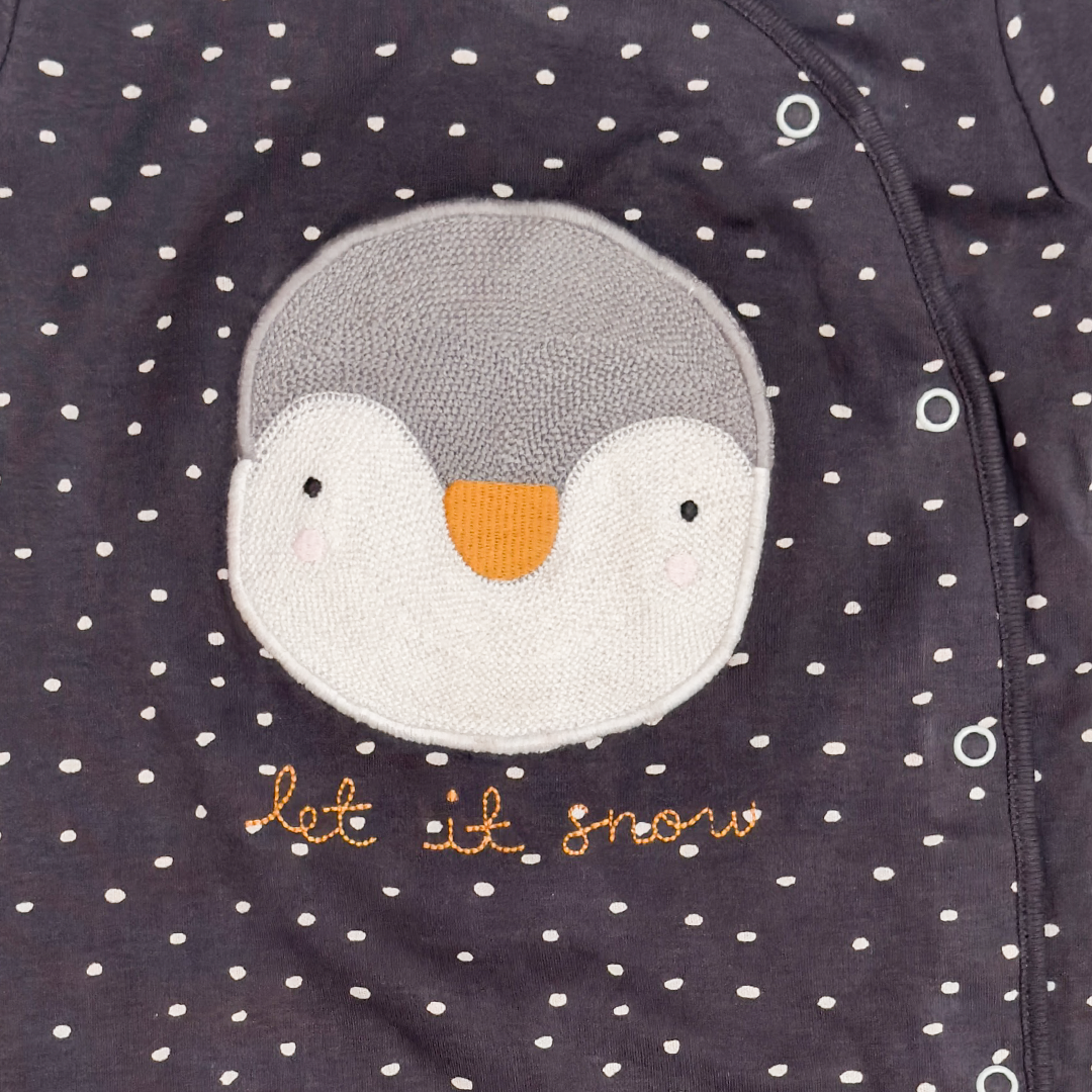 GREY PENGUIN BUTTON SLEEPSUIT
