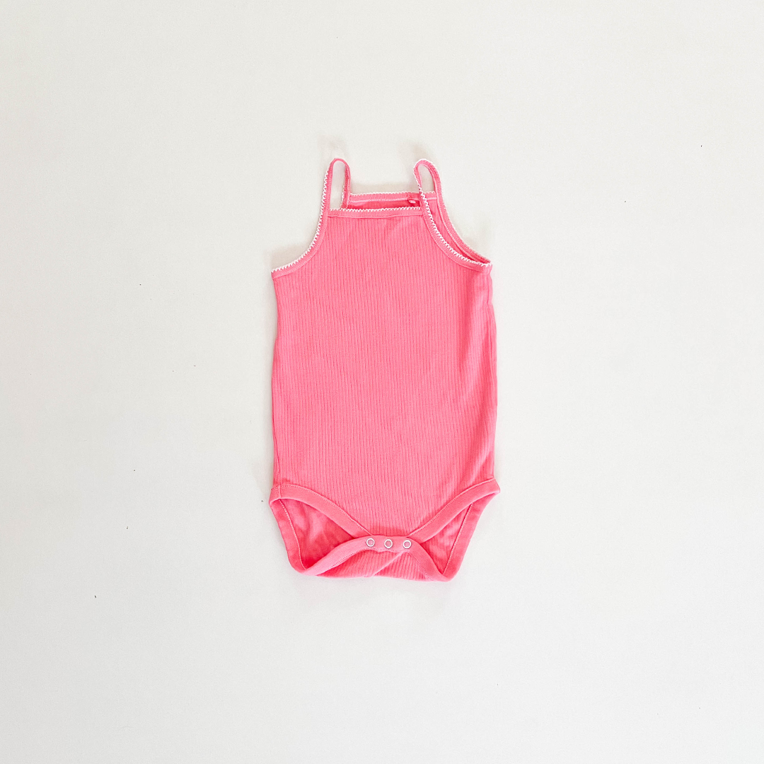 HOT PINK RIBBED SPAGHETTI STRAP ONESIE