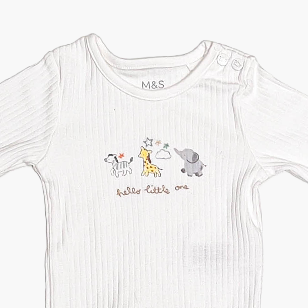 LITTLE ONE WHITE RIBBED SLEEPSUIT
