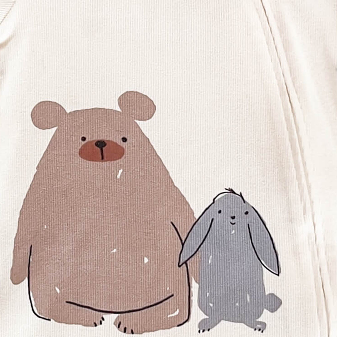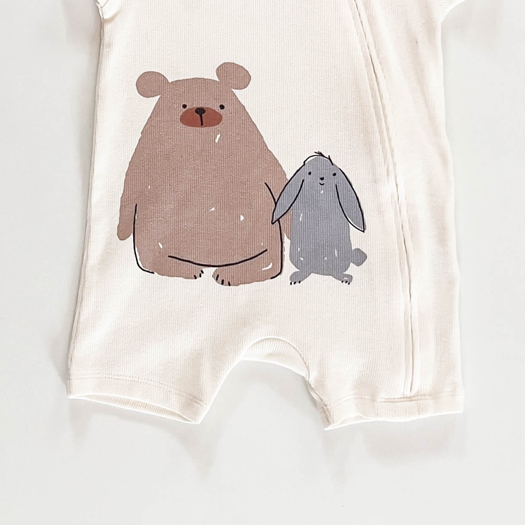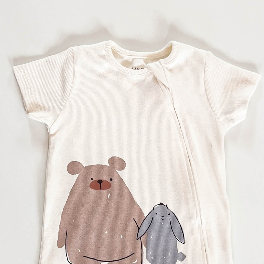 IVORY PRINTED ZIP RIBBED JUMPSUIT