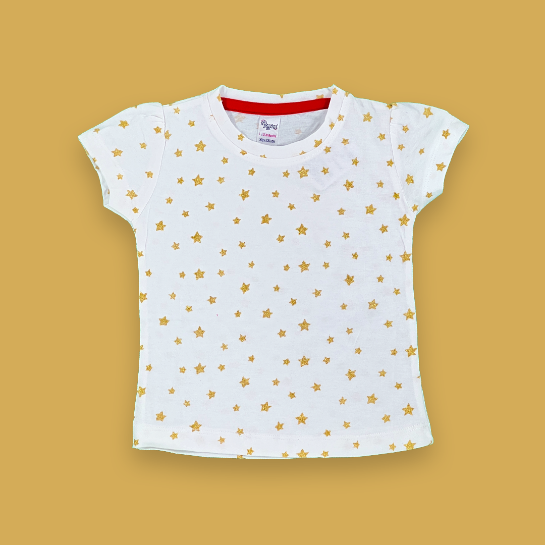 Golden Star Glitter Print White color Two Piece for Girls | 12-18 Months |