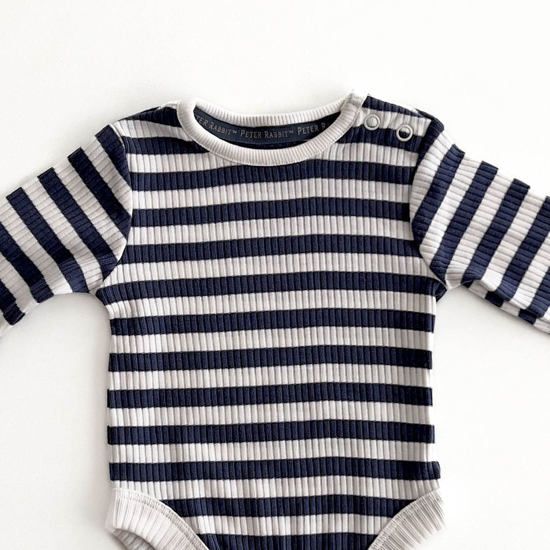 WHITE AND NAVY BLUE STRIPES RIBBED ONESIE