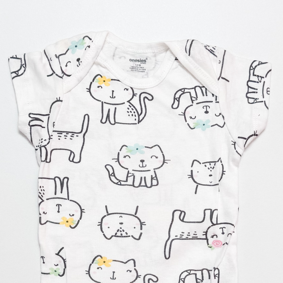 WHITE CAT PRINTED ONESIE