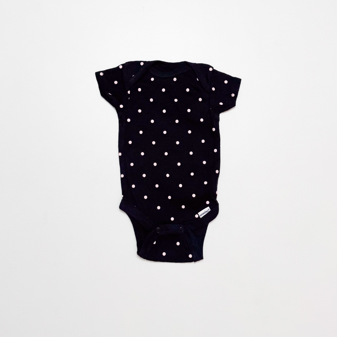 BLACK POLKA DOTTED ONESIE