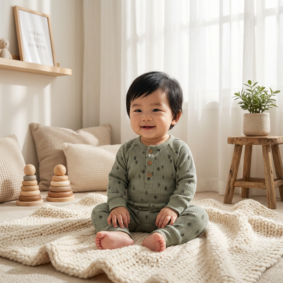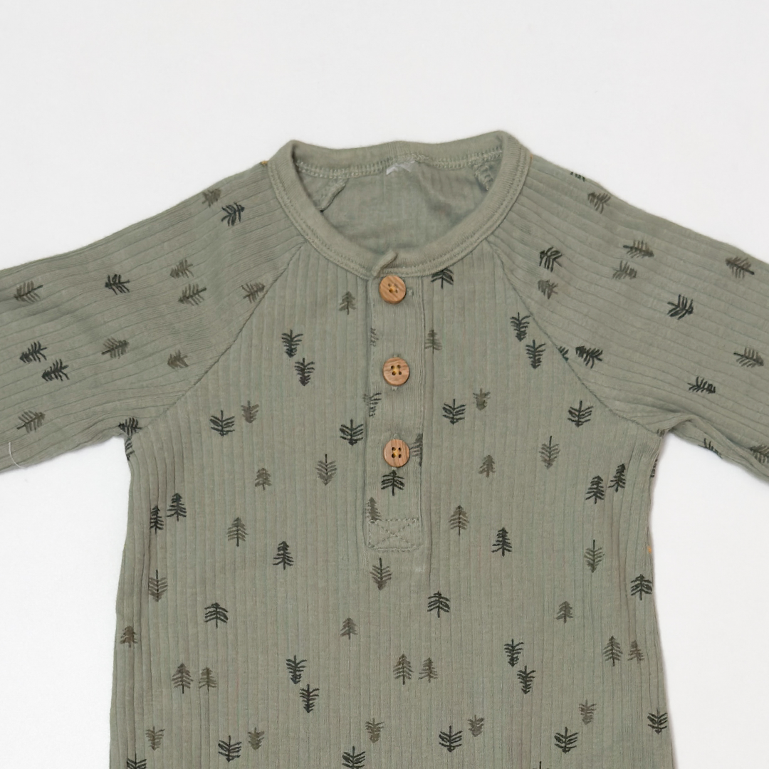 OLIVE GREEN RIBBED PRINTED ROMPER
