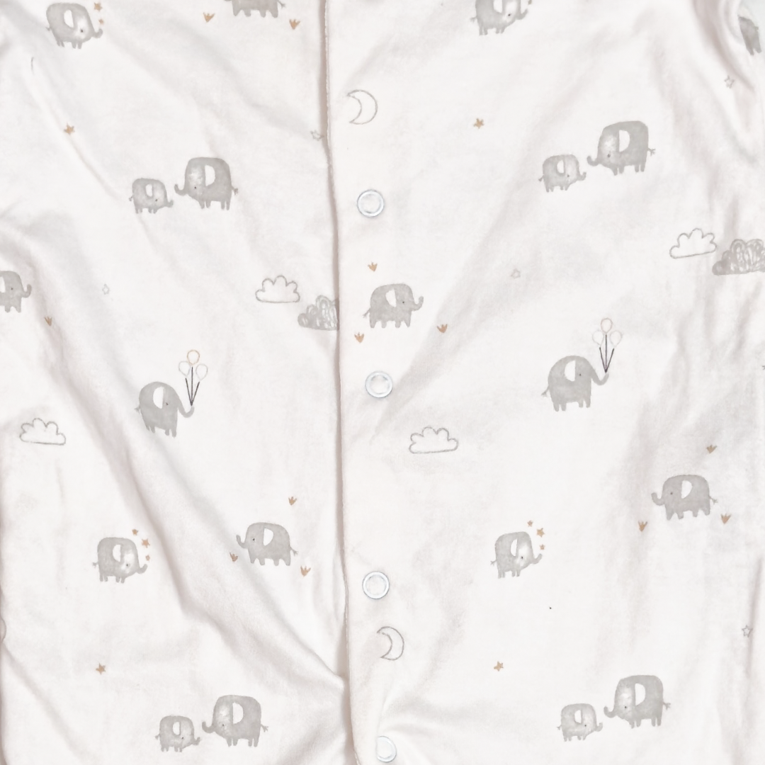 WHITE ELEPHANT PRINTED SLEEPSUIT