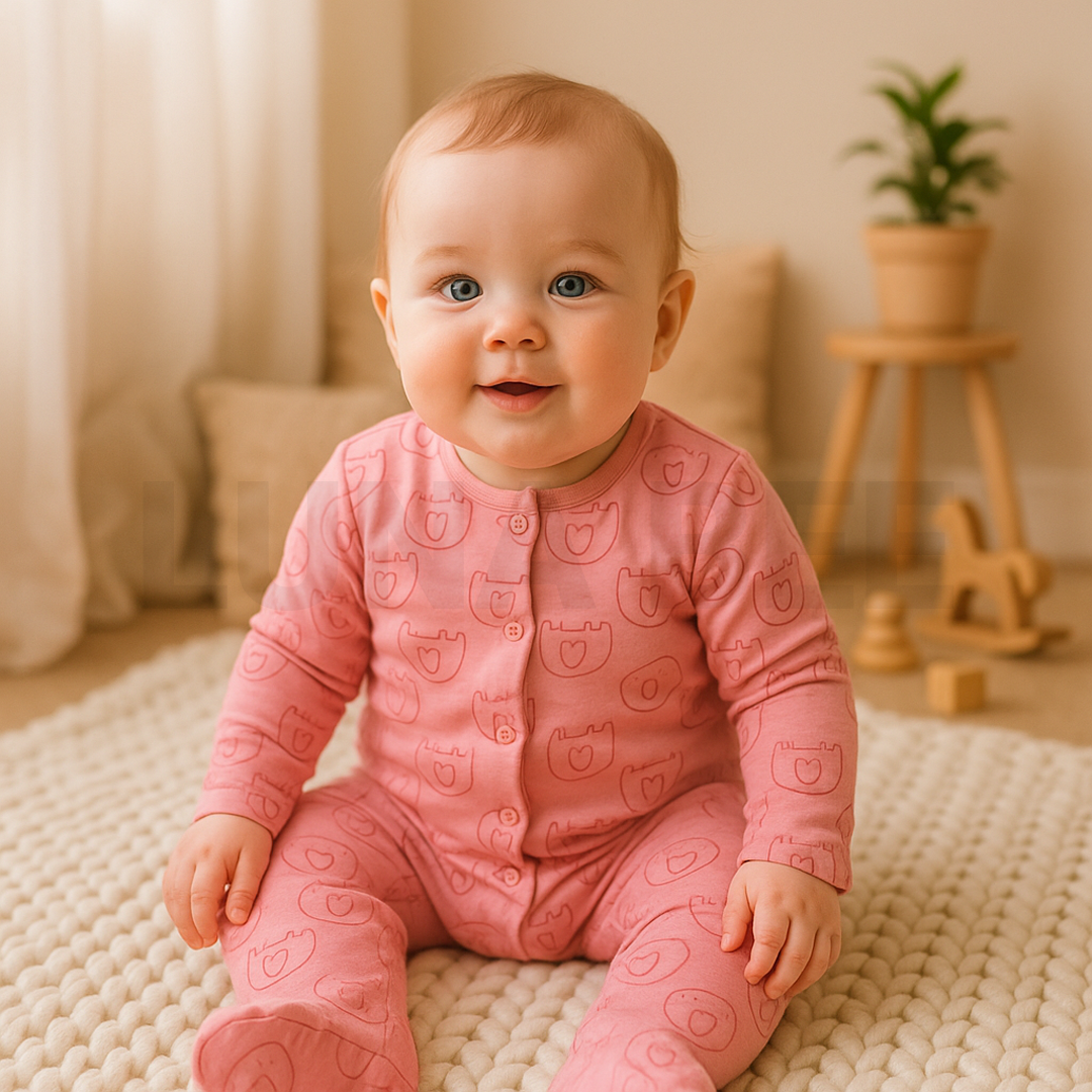 PINK ELEPHANT PRINTED SLEEPSUIT