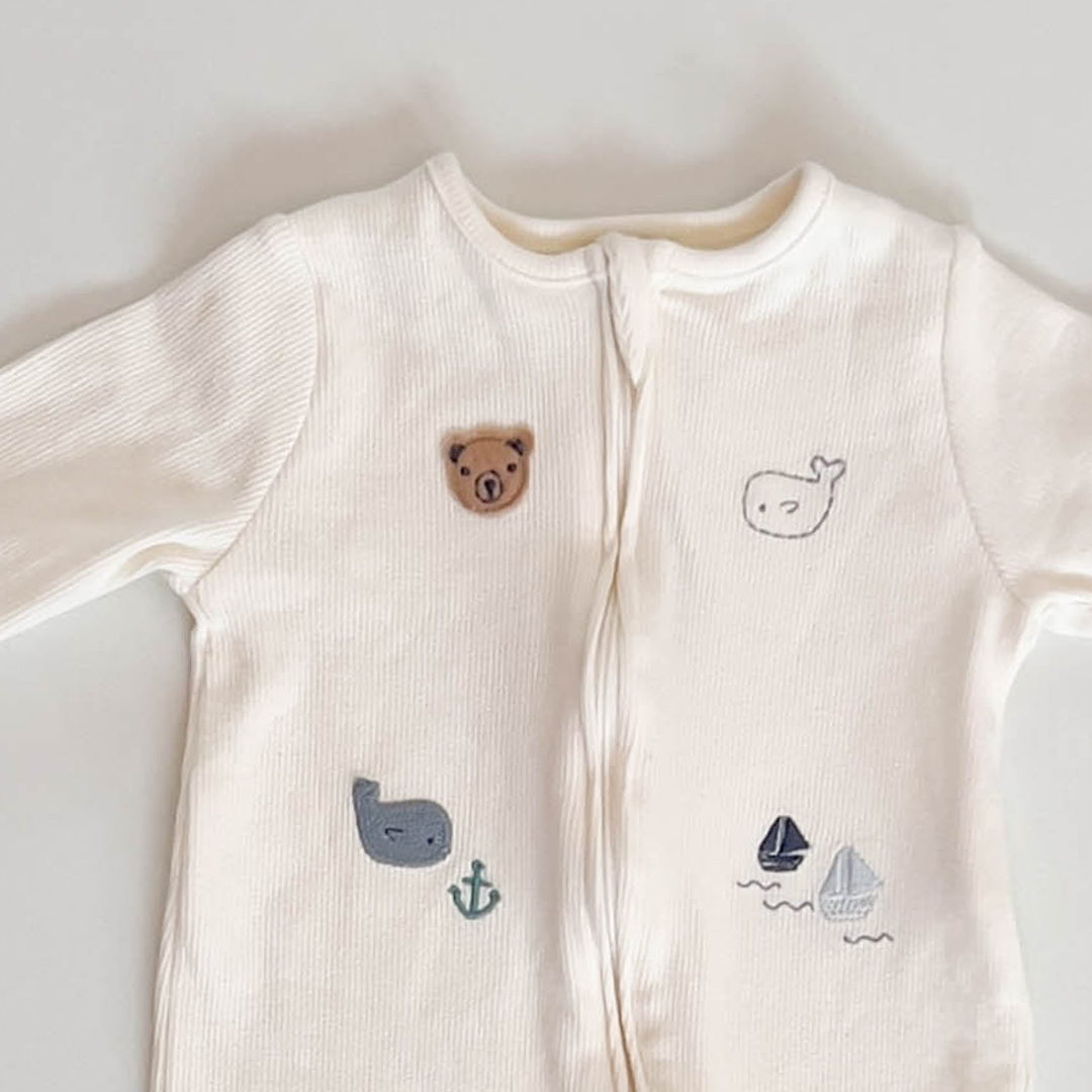 WHITE PATTERNED RIBBED ZIPPER ROMPER
